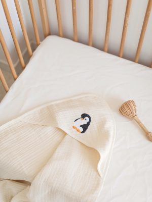 Penguen Nakışlı 4 Katlı Müslin Kundak Bornoz 90x90cm
